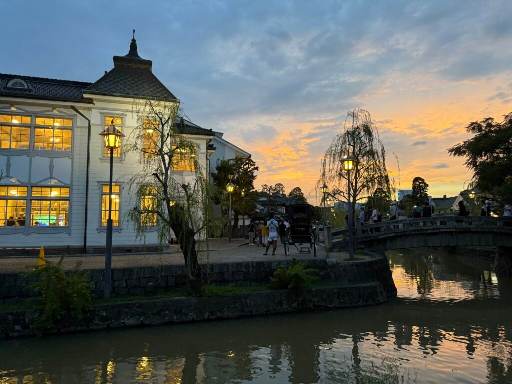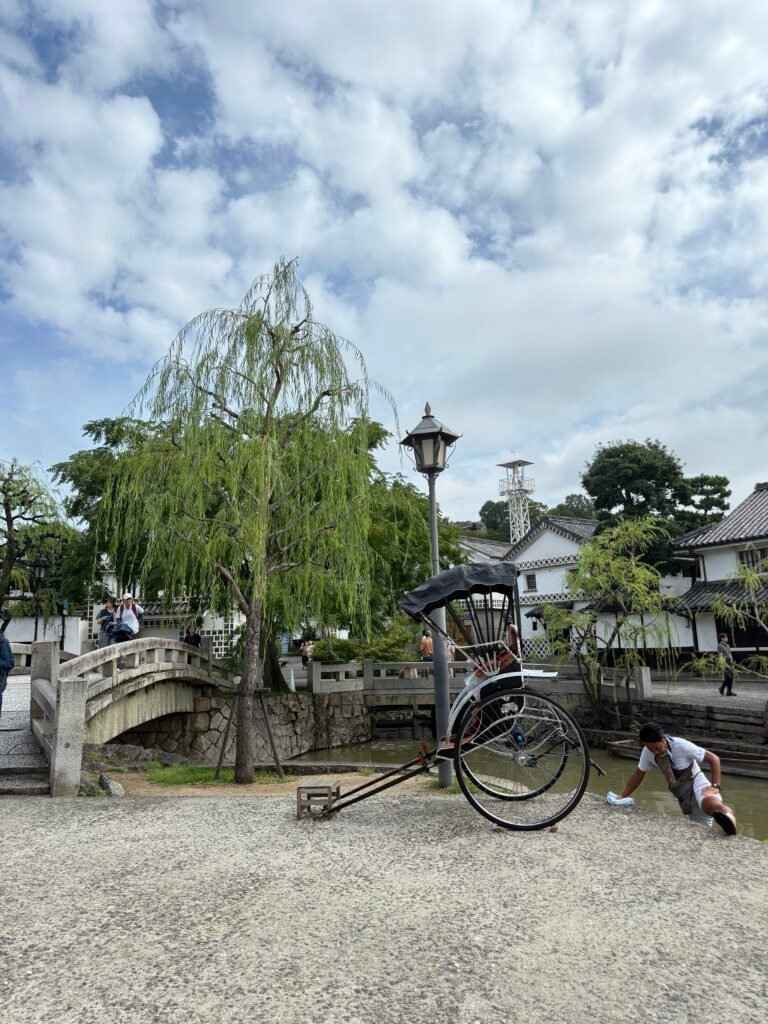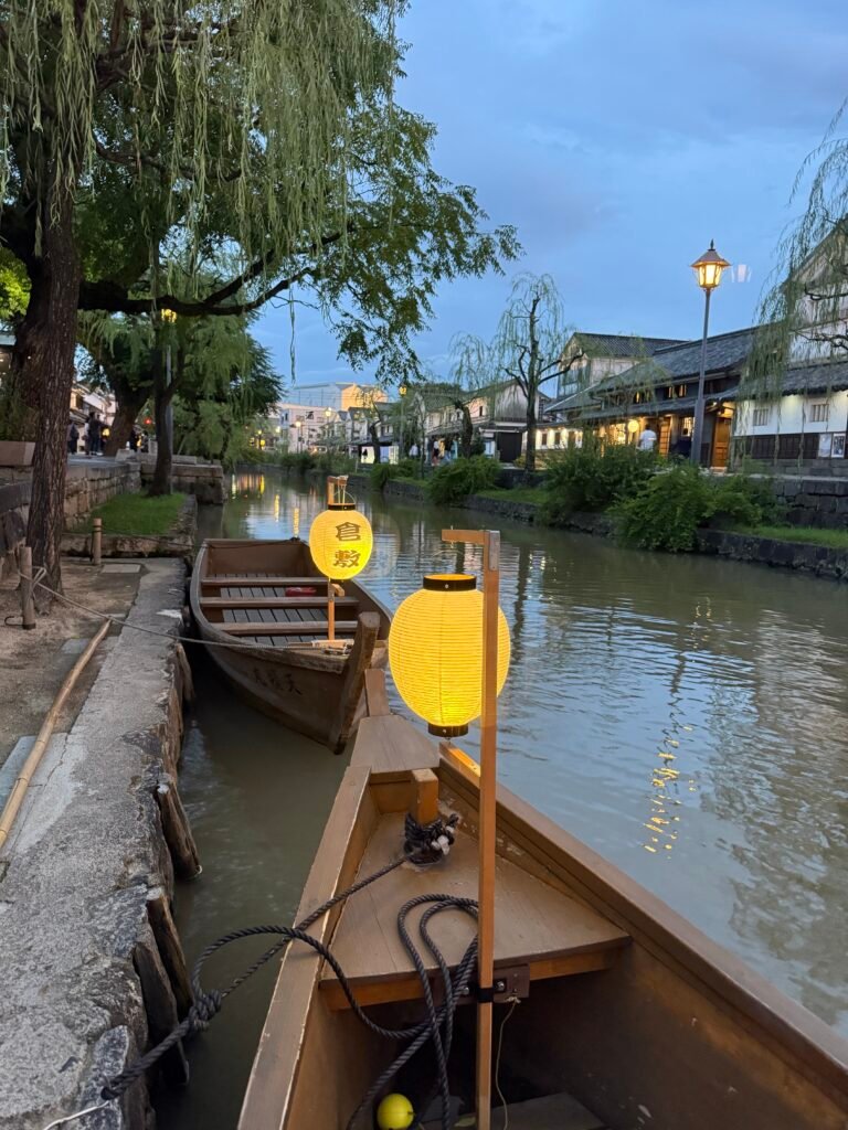 來到倉敷的第二天,我們安排了一整天待在倉敷美觀地區。這裡被稱為小京都,白牆黑瓦的街景搭配河畔的柳樹,享受優閒漫步在日式街道與夜遊運河的浪漫氛圍。