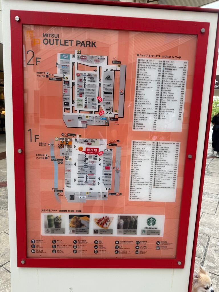 Outlet的品牌很多,價格也不錯,是個消磨時間又能挖寶的好地方,若時間比較沒那麼充裕的話可以先參考下面的Outlet地圖看好要去的店。逛到下午三點左右,太陽沒那麼烈了,我們把買的東西放在置物櫃,悠悠地回到美觀地區前往阿智神社和準備去搭乘我們的遊船。