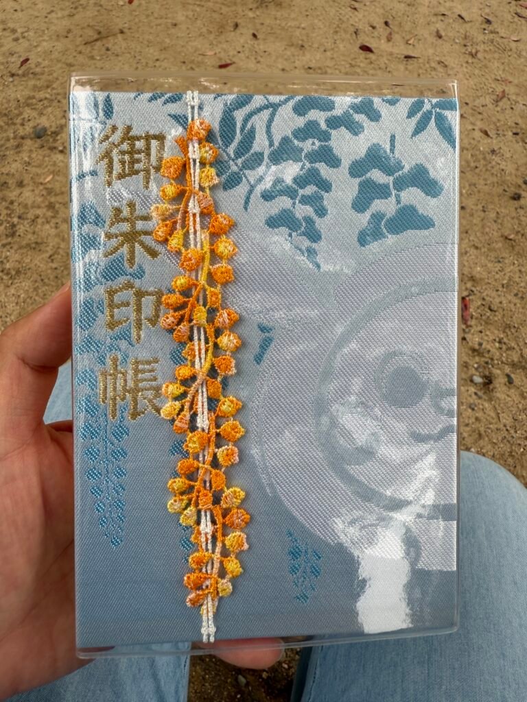 這裡的御守也很有特色,剛好之前的御珠印帳已經滿了,正好在這裡入手一本搭配阿智神社有名的紫藤花御守很好看。