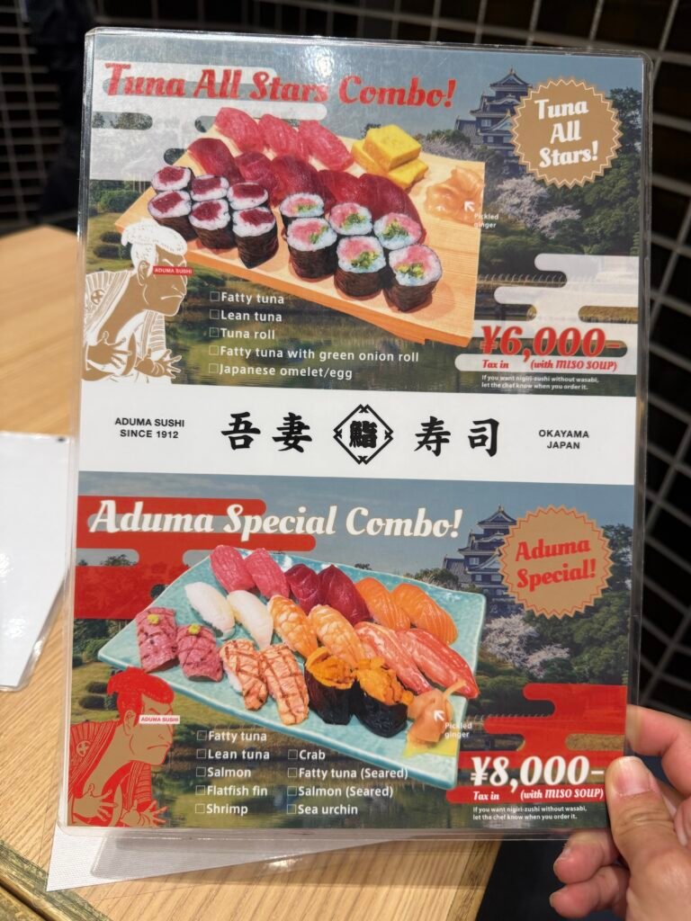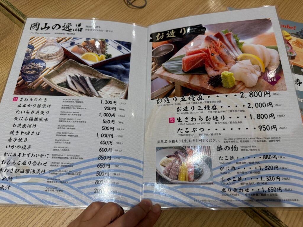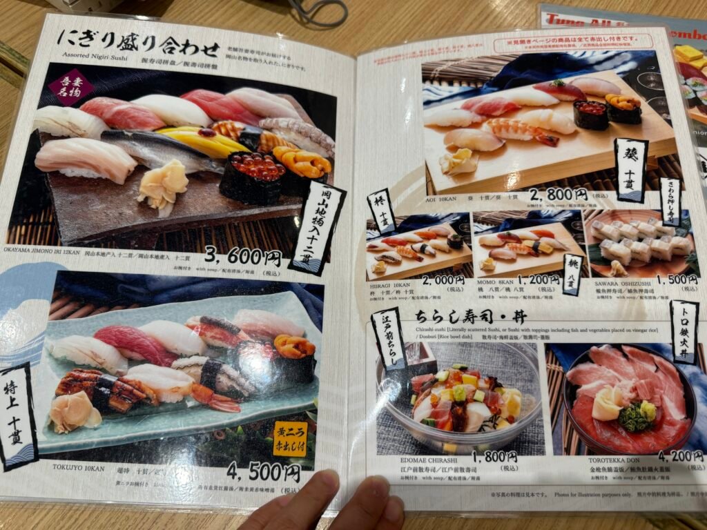 除了岡山名物散壽司之外也有其他握壽司選擇,包含使用岡山在地食材的握壽司組合,菜單上除了日文也有英文和中文非常外國人友善。