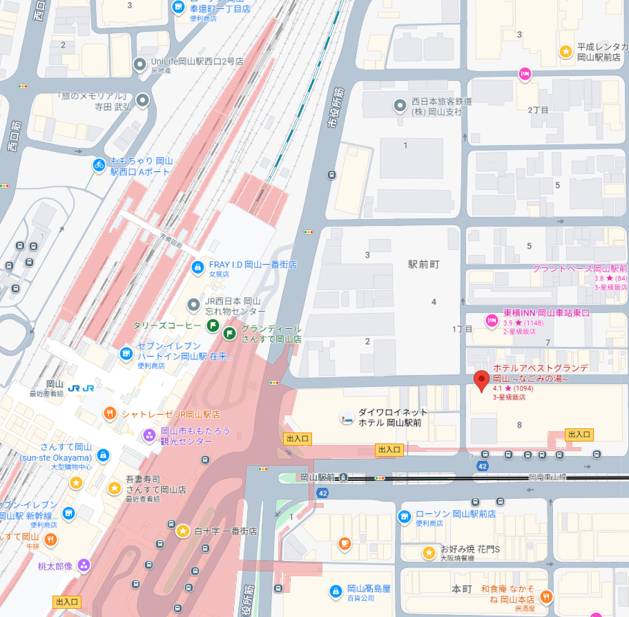 交通:JR 岡山站出來,步行約 3-5 分鐘即可抵達