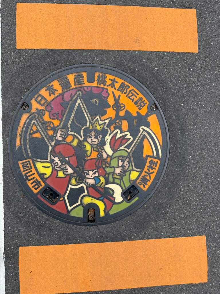 到達吉備津站走大概十分鐘就到達吉備津神社了,一出站沒多久就看到了桃太郎水溝蓋