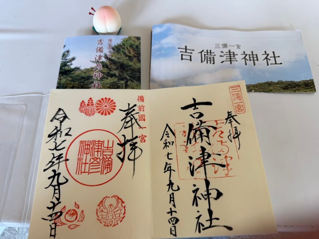 在吉備津神買了桃子御守還有聲音很好聽的水守玲,既然一次參拜了兩個桃太郎神社正好把御珠印畫在同一面的隔壁頁
