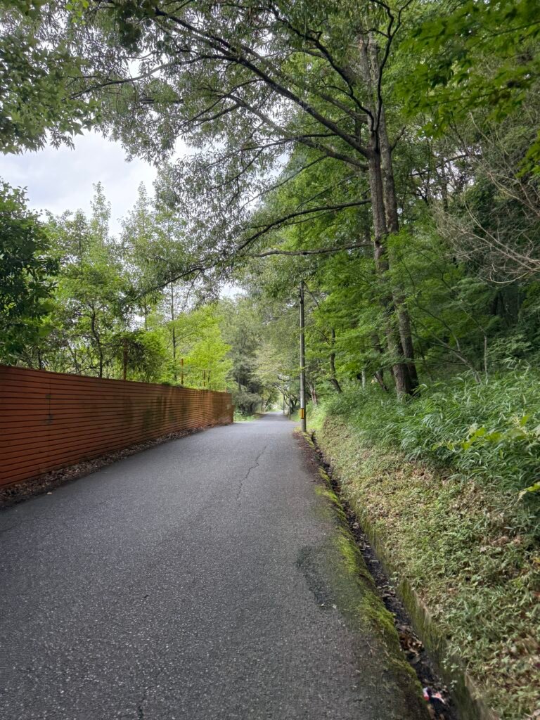 幸好沿著旁邊的住宅區走一段後便進入了有樹林的路段有樹蔭後涼快多了,邊走邊聊天似乎也沒有感覺自己走了30分鐘就到了吉備津彥神社的停車場參拜道