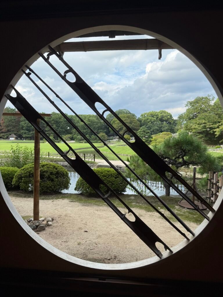 廉池軒朝著池塘而建,可以從室內觀賞到池塘和對岸的小島等庭園內美麗的景色,據說廉池軒是歷代藩主最喜歡的地方,我們也決定進來喝個查順便避暑一下,結果裡面只有電風扇哈哈哈,幸好先我們入內的客人離開後還能獨享電扇涼快一下!