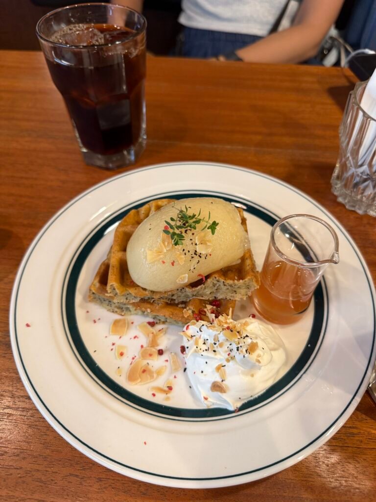 點了咖啡和白桃鬆餅意外好吃,且店家居然有賣台灣烏龍茶覺得很親切