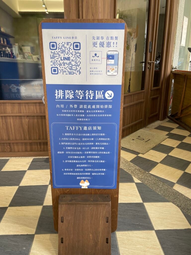 店家有一些內用的規定在門口的牌子上有寫,也順便分享一下,另外牌子上沒提到的是若毛孩不小心在店內如廁的話會收清潔費兩百元(參考IG貼文),所以進去前可以先帶毛孩去解放一下或者使用禮貌帶