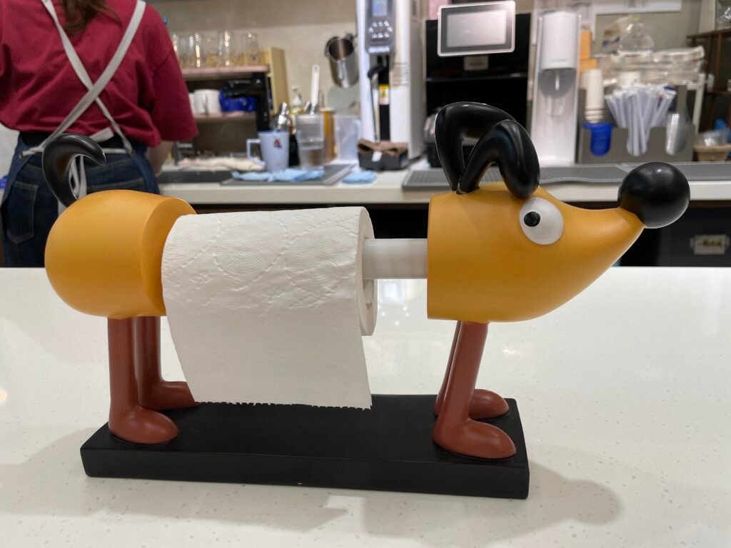 桌上可愛的臘腸狗衛生紙架毫無違和感