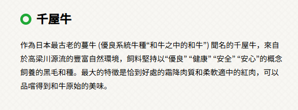 千屋牛被稱為和牛的始祖,產自岡山縣北部的新見市,是名為「竹之谷蔓牛」的優良血統後代,千屋牛擁有悠久的育種歷史,被公認為全國和牛品牌的根源之一。千屋牛在肥沃的土壤和優質水質中成長,口感鮮嫩、霜降適中、帶有獨特甜味,它的產量稀少較少出口至日本其他地區,主要在岡山縣內流通,所以來到岡山,絕對不能錯過這份在地限定的美味。
