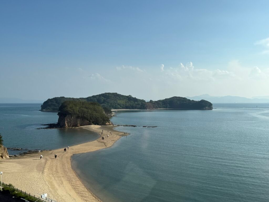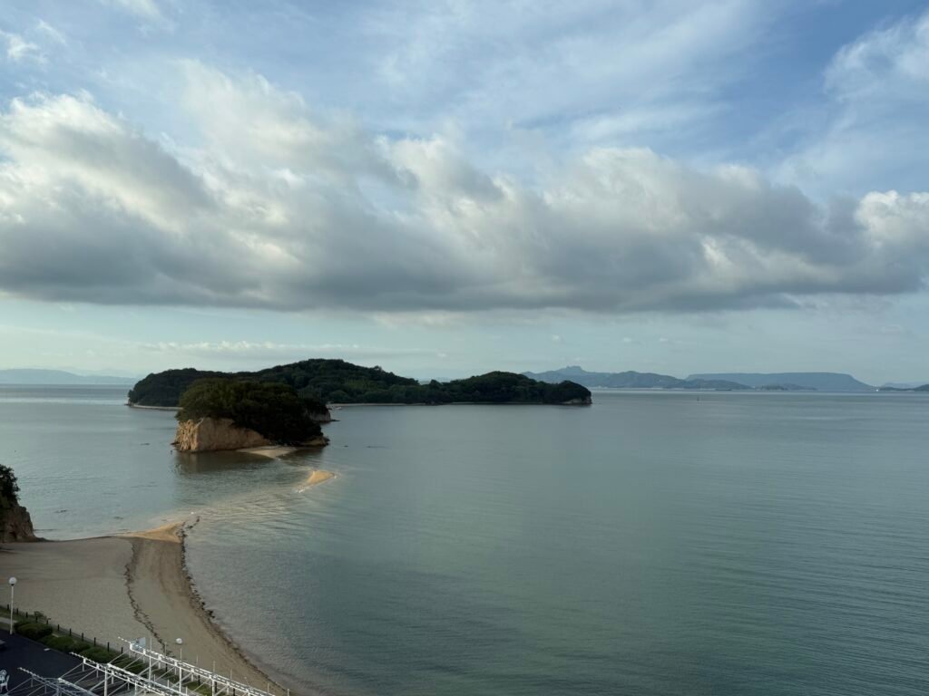 當初在網路上看到網友分享這間在房間就能看到天使之路的飯店當下便決定要來住一晚,因為常用的訂房網沒有合作還特地去申請了Rakuten travel帳號來訂他。小豆島國際飯店主打的就是部分房型在房間內就能直接看到天使之路,也有晚餐會席不需要再特地出門,即便不在退潮時間也有美麗的海景可以觀賞。