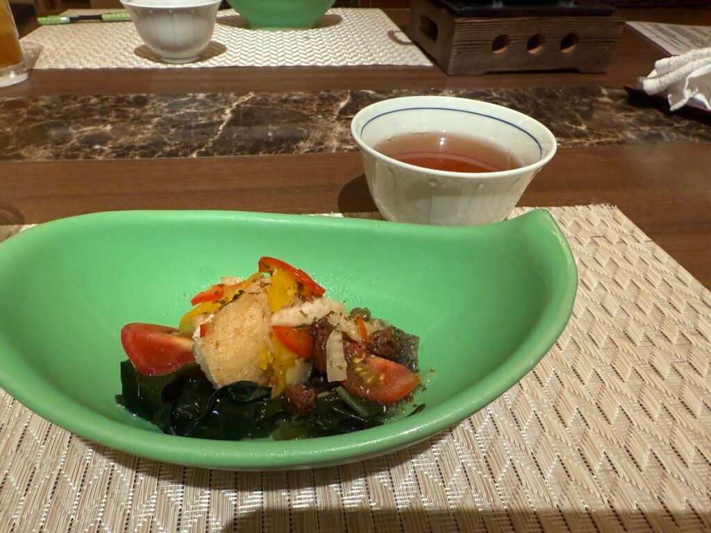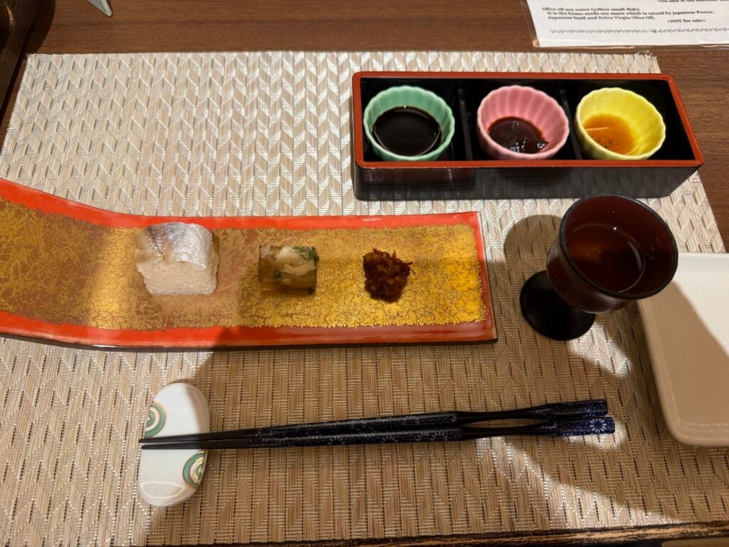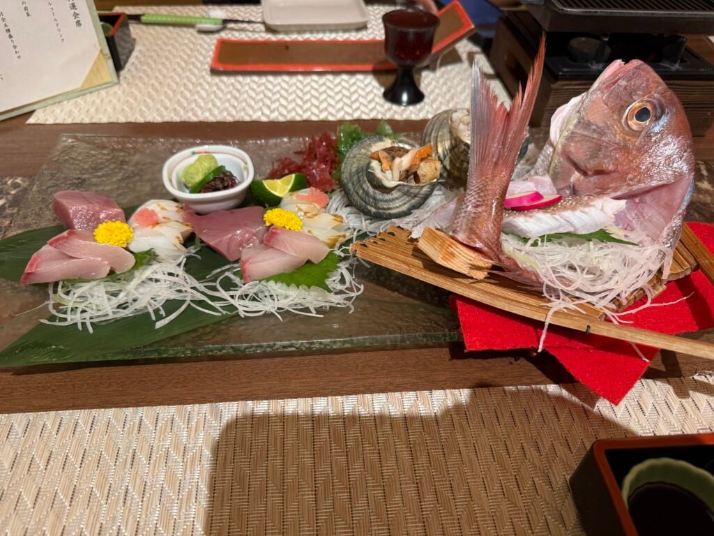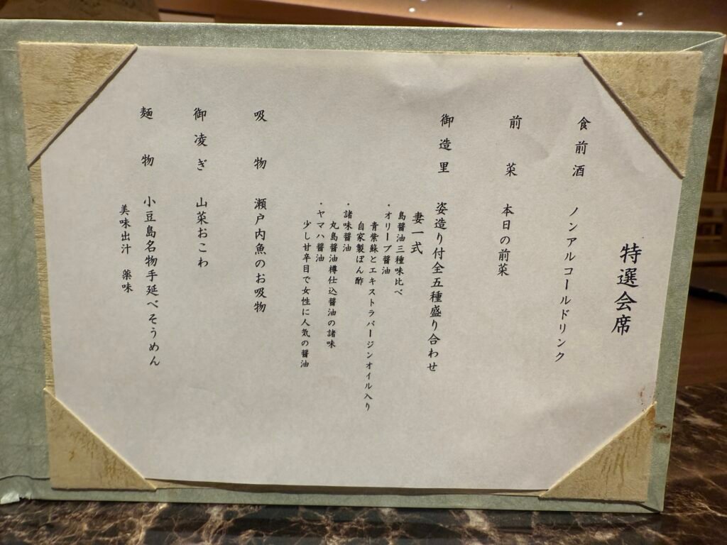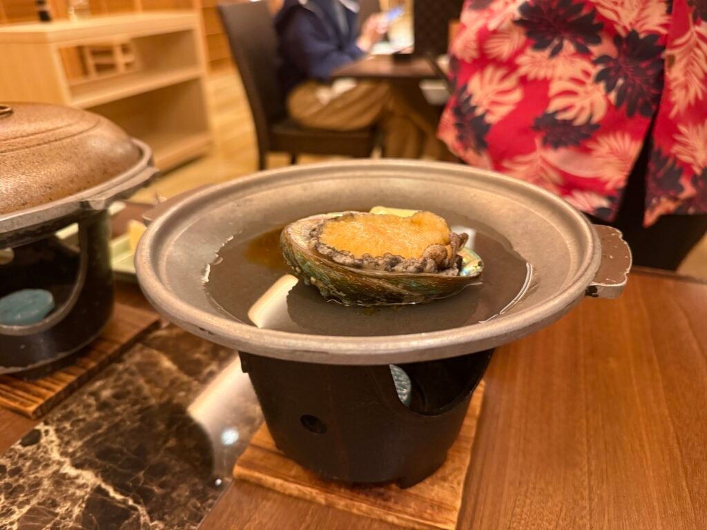 我們預定的是日西合璧房【天使路景觀】 [標準] [日式西式客房]包含【特別和宴】5種生魚片×烤鮑魚×和牛鐵板燒 [日式晚餐] [自助式早餐] 方案,整體來說海鮮和牛肉都好吃,一人一份的會席吃完覺得滿剛好地,但對食量大的人來說可能稍微偏少,只有其中的麵物-小豆島素麵是可以自己去無限取用的,晚餐吃到素麵後覺得不錯後來也在一樓的賣店買回台灣。