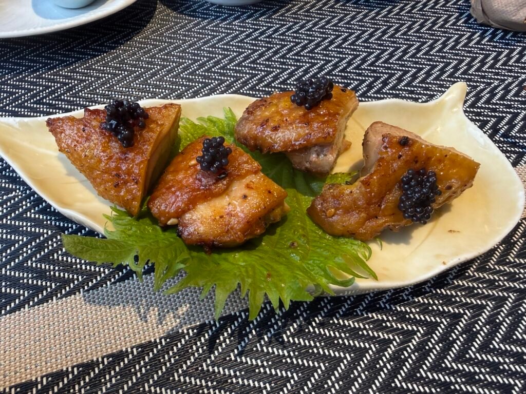 除了招牌的牛小排,我們這次還意外發現了一個小彩蛋!在掃碼進入點餐系統時,竟然滑到了實體菜單上沒有出現的魚子醬雞生蠔,烤得金黃微焦的雞皮透著誘人的光澤,一口咬下,肉質軟嫩多汁,炭烤的專屬香氣與鮮甜的肉汁在嘴裡完美融合。