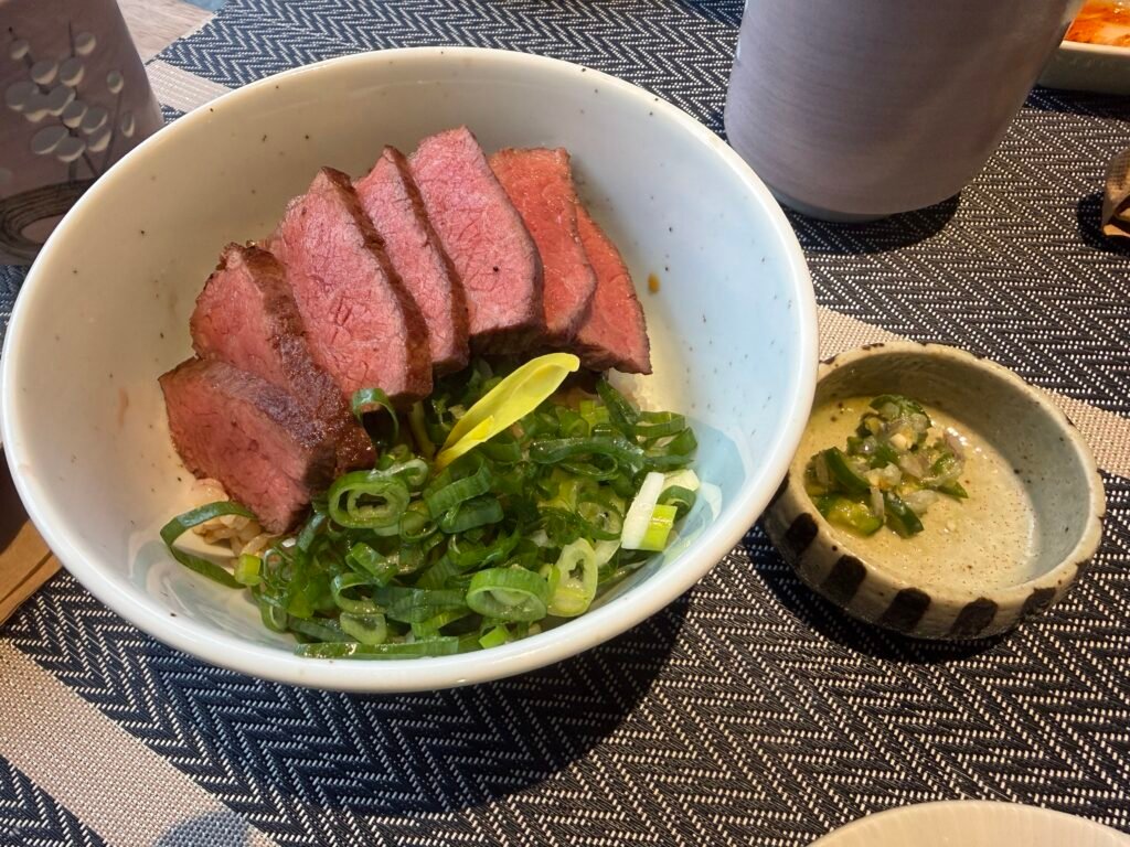 這次點了店內的招牌USA 牛小排丼,老闆將火候拿捏得恰到處。經過高溫炙烤的牛小排,外層帶點迷人的微焦香氣,內裡卻依然保持著粉嫩多汁的口感。厚實的肉片鋪滿整個碗面,夾起一塊沾附著特製醬汁的牛肉,配上一口熱騰騰、吸滿肉汁的米飯,那種油脂在嘴裡化開的豐潤感,真的是大口吃肉的最極致享受!
