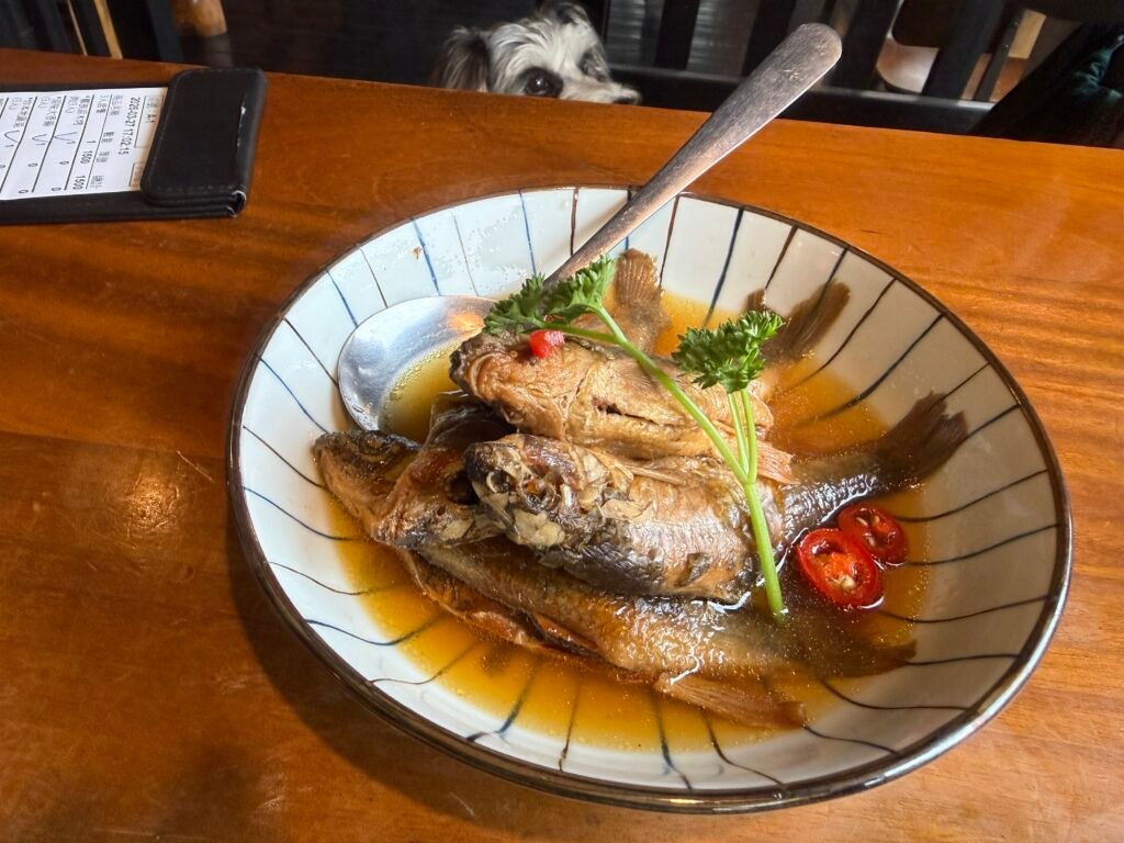 紅燒野溪魚原本以為會有很多小刺,吃下去才發現已經燉煮到吃不出魚刺了,整隻吃下去吃魚不吐骨頭