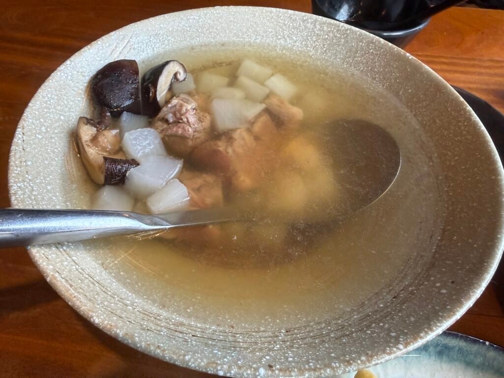 這天的湯是香菇雞肉,雞湯很清澈跟香菇就是絕配