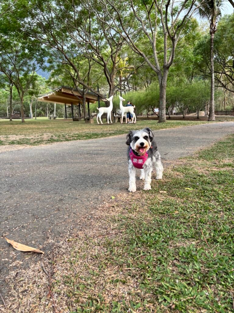 因為我們一路開車南下,這時候能有一個讓狗狗下車舒展筋骨的地方真的太重要了。樂樂一看到這片無邊無際的綠色地毯,瞬間開啟了嗅聞模式,在草地上開心地邁開步伐東聞聞西聞聞。看著樂樂東聞西嗅、笑得合不攏嘴的模樣,長途車程的疲憊感瞬間就消失了一大半。