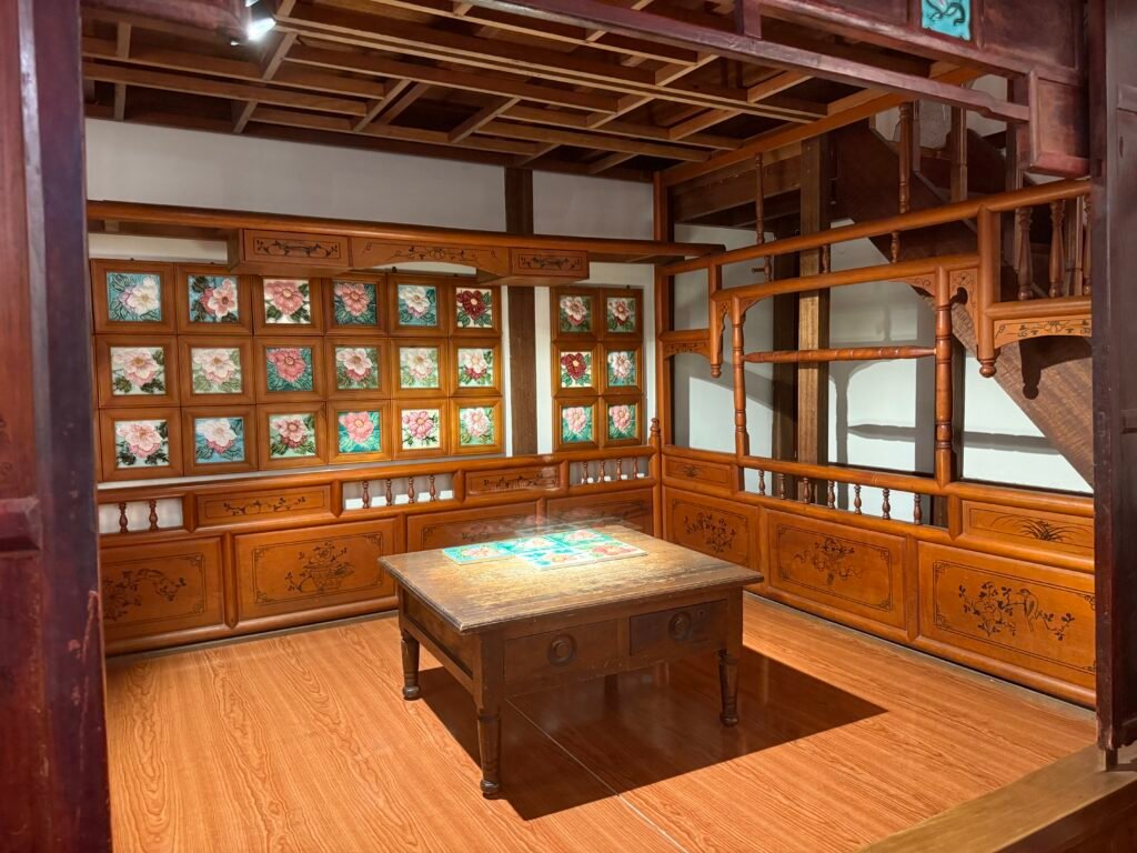 館內的空間雖然不算非常大,但佈置得極具巧思。一整面的花磚牆、復古的紅眠床、鑲嵌著花磚的老式傢俱,每一個角落都是絕佳的拍照背景。而且入館門票只要每人 100 元還可以折抵 50 元的館內文創商品消費。