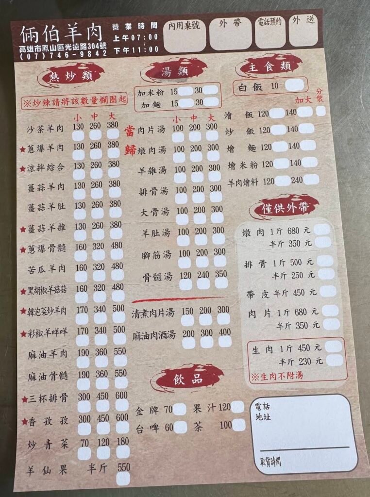 📖倆伯羊肉菜單